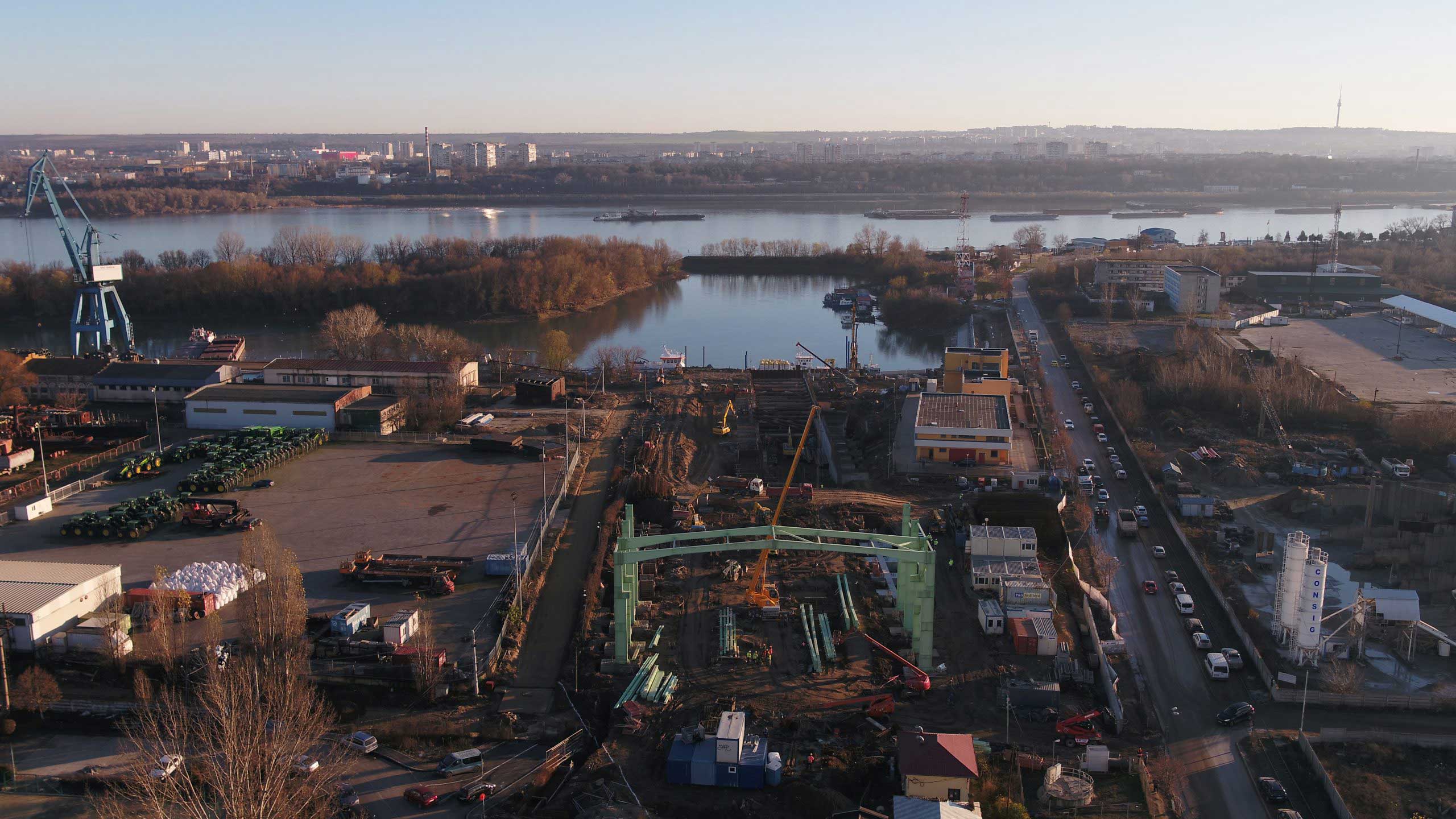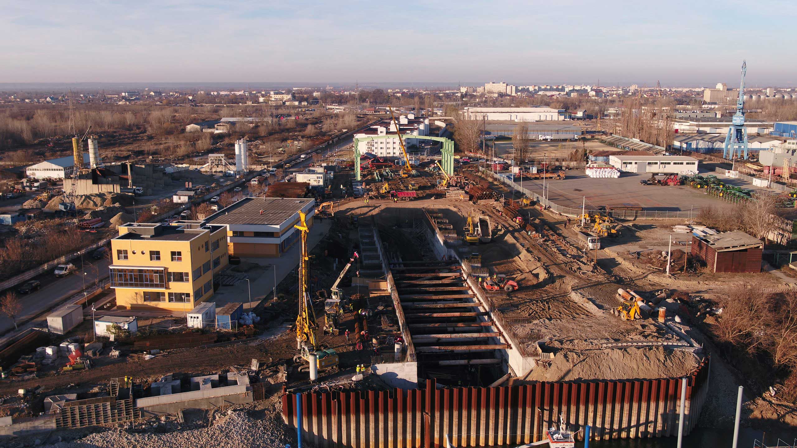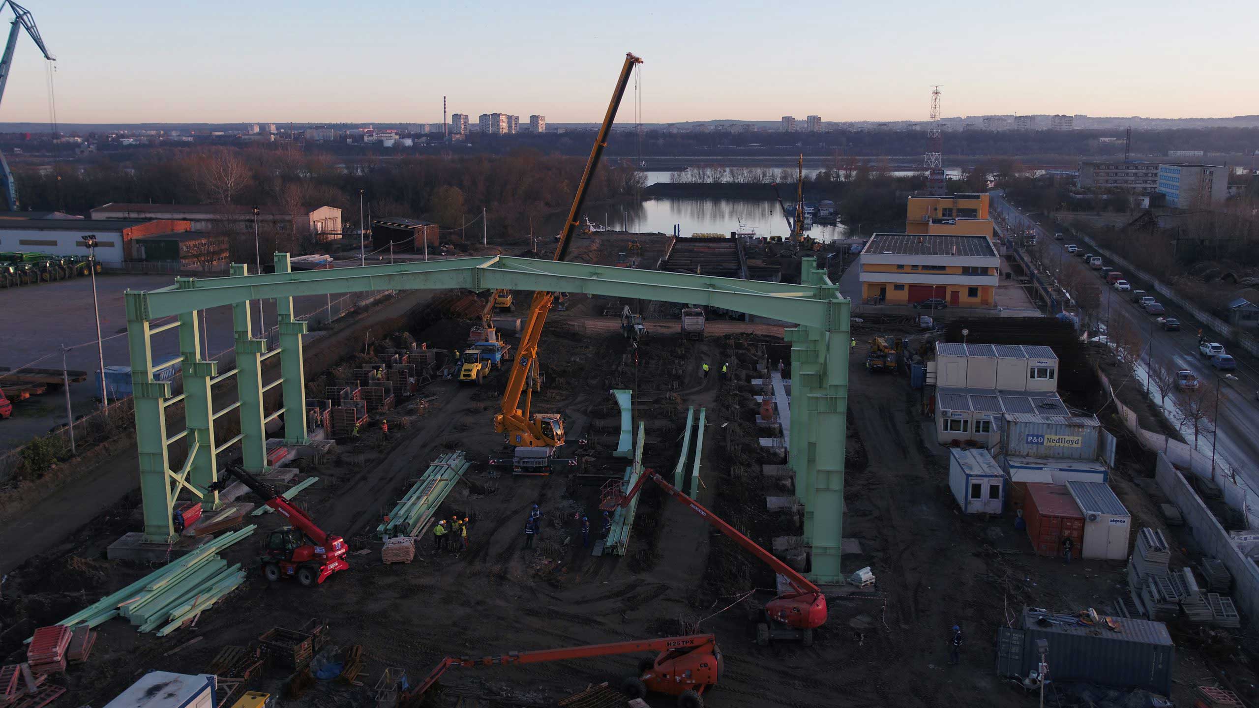 Architecture, structural engineering, mechanical, electrical, plumbing, roads, sidewalks, and green areas design services, related to a set of buildings with harbor functions, storage, and office building facilities. Applied structural solution: Infrastructure Drilled Piles, Steel Structure.