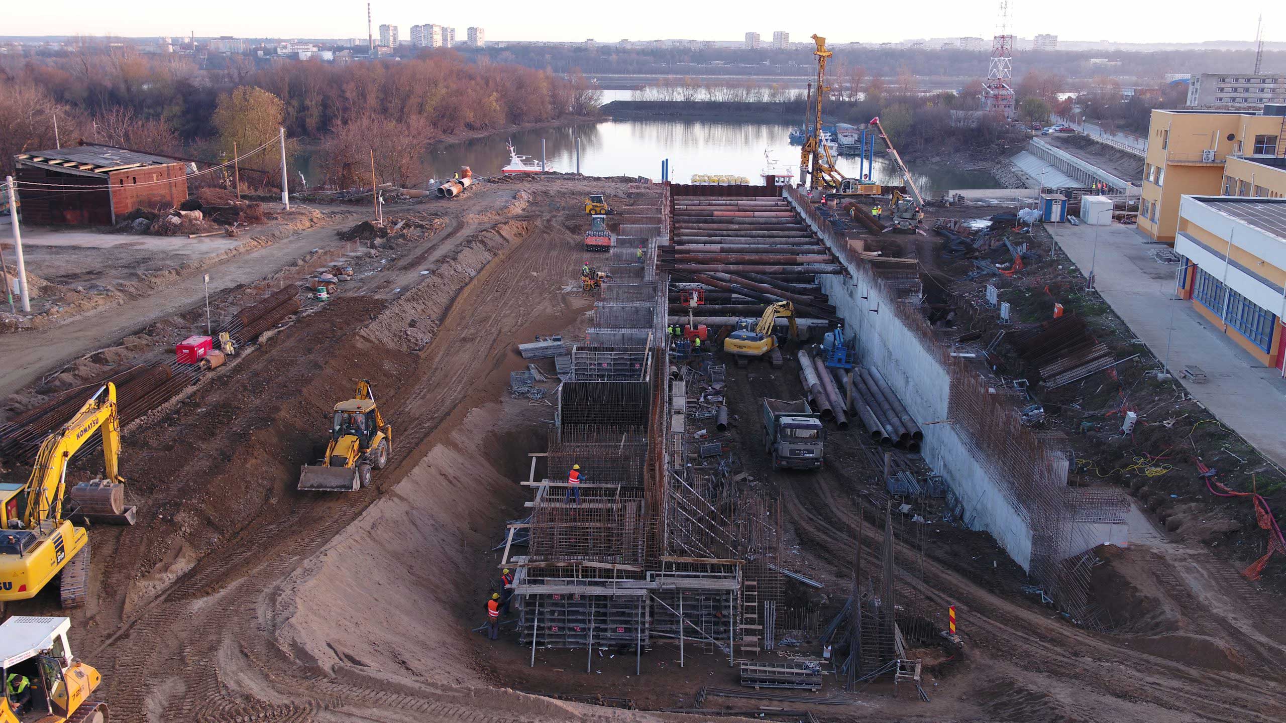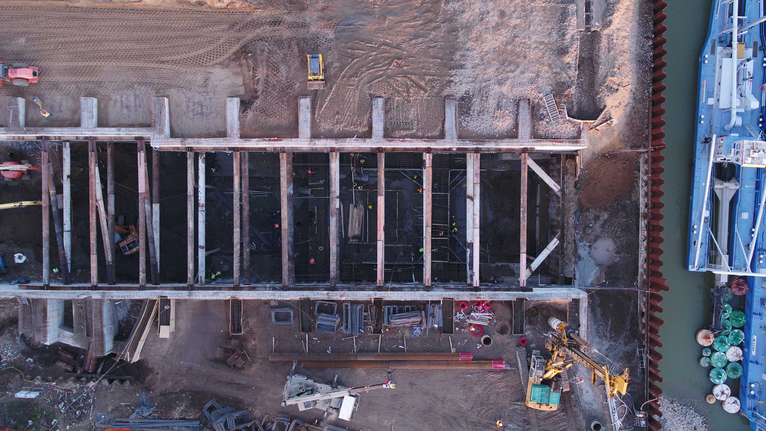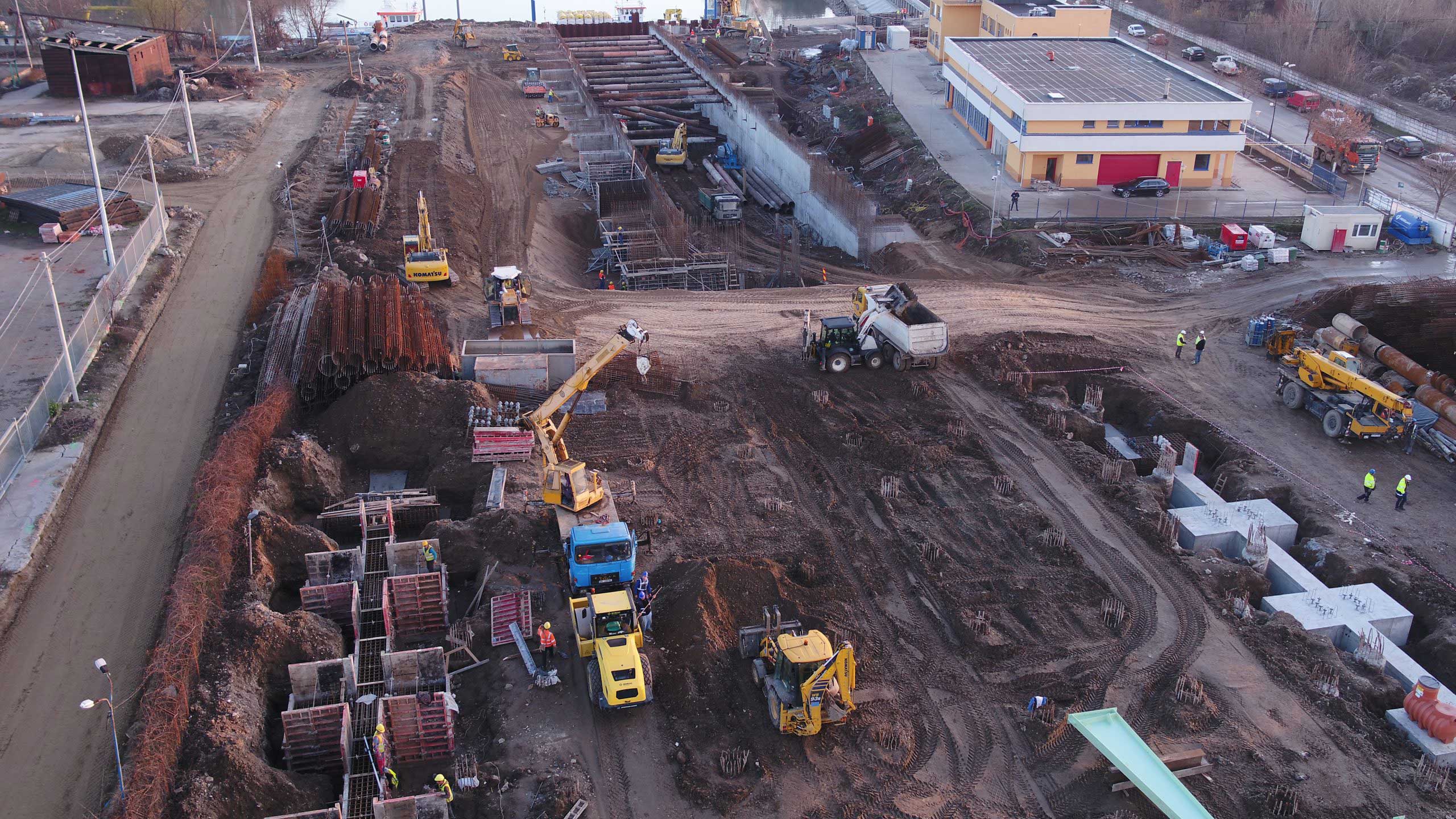 Architecture, structural engineering, mechanical, electrical, plumbing, roads, sidewalks, and green areas design services, related to a set of buildings with harbor functions, storage, and office building facilities. Applied structural solution: Infrastructure Drilled Piles, Steel Structure.