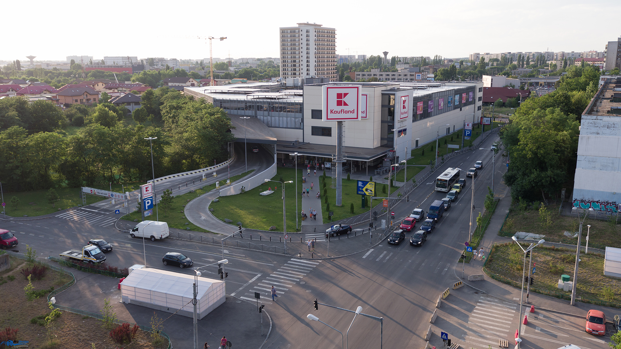 Structural engineering design services related to a construction with shopping center functions. Applied structural solution: Cast in Situ & Precast Reinforced Concrete, Steel Structure